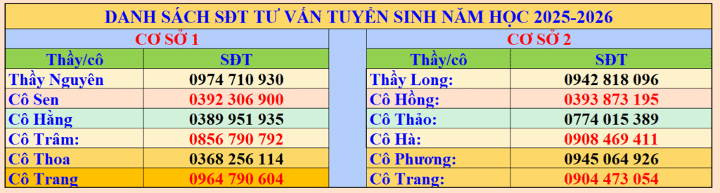 Thông tin Tuyển sinh chi tiết năm học 2026 – 2027 Tại đây